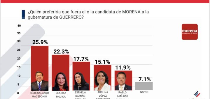 Guerrero tiene contienda fuerte por la gubernatura, aunque la encabeza el senador Félix Salgado Macedonio, estaría imposibilitado debido a la regla de no nepotismo, la actual gobernadora Evelin Salgado no podría heredar el mando...