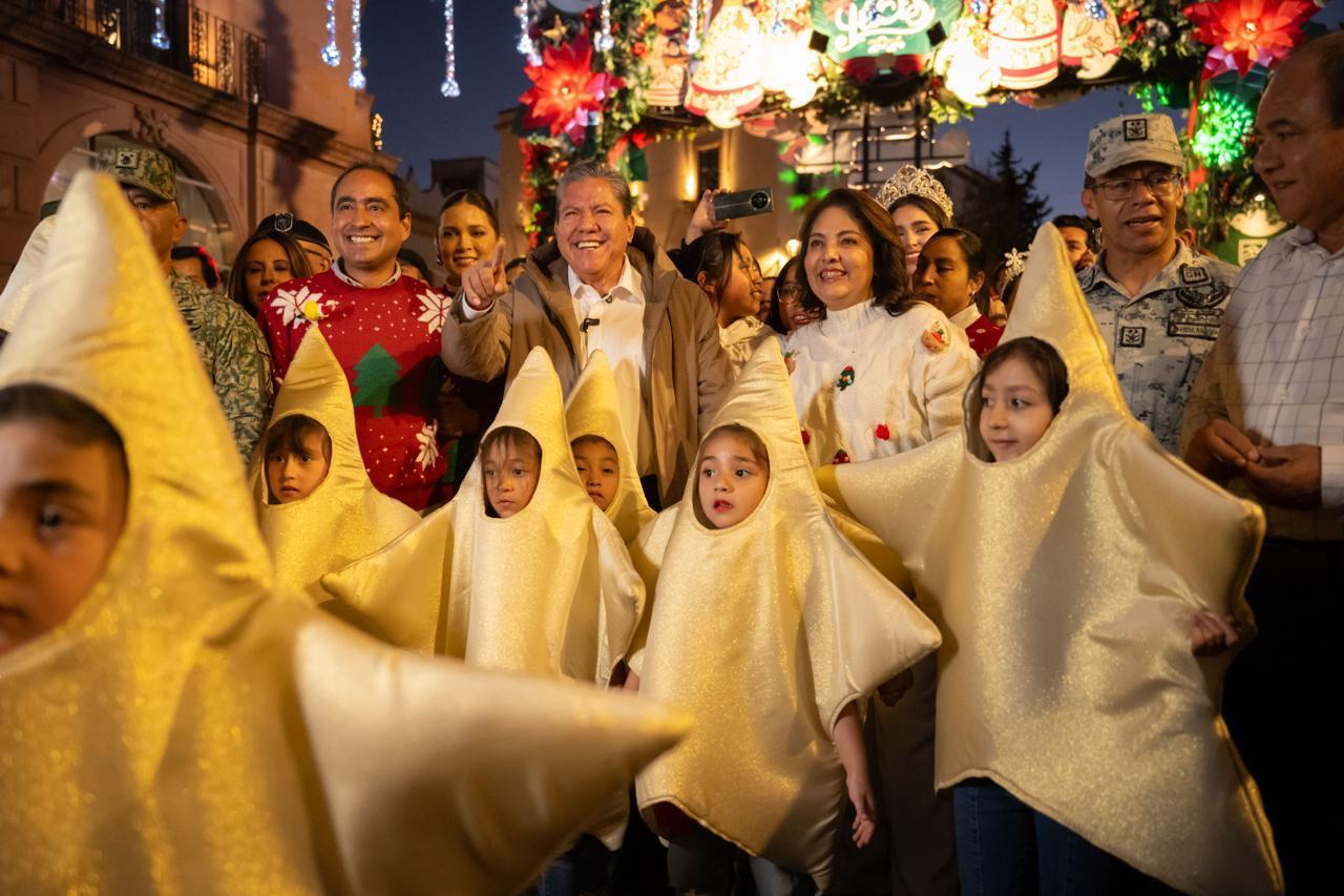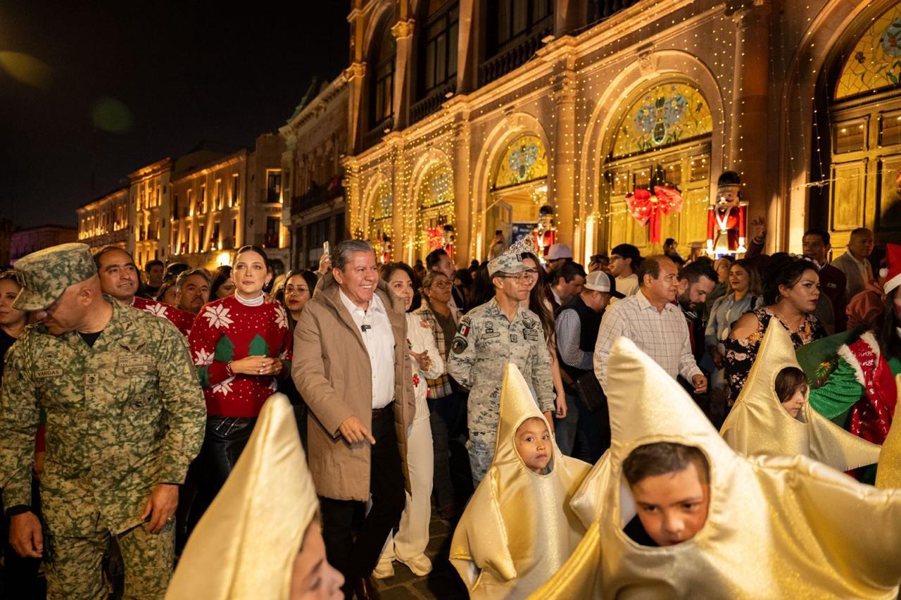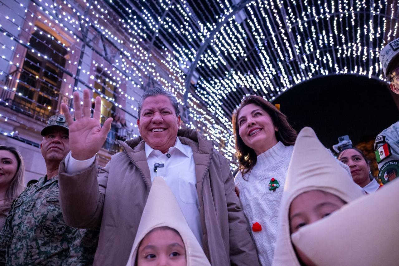 Con la presencia de miles de zacatecanos y visitantes, el Gobernador David Monreal Ávila y su esposa, Sara Hernández de Monreal, dieron inicio al Festival de las Luces “Juntos Somos Paz”, enmarcado en las plazas, calles y callejones del Centro Histórico para dar la bienvenida a la temporada navideña.