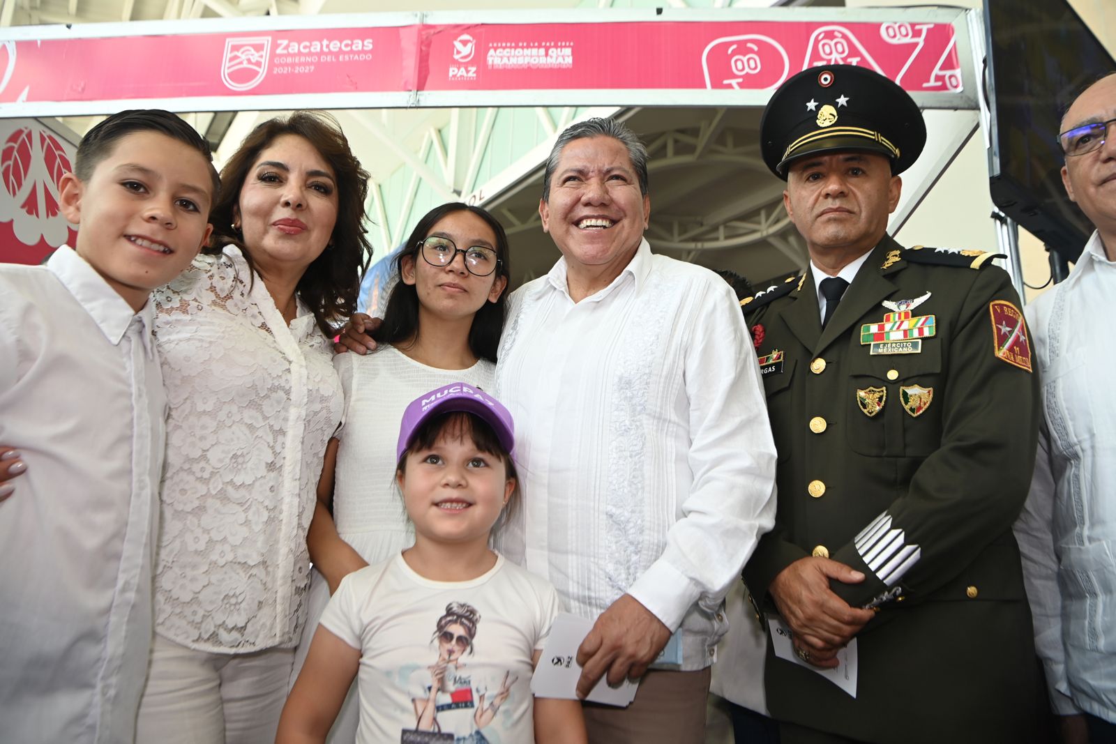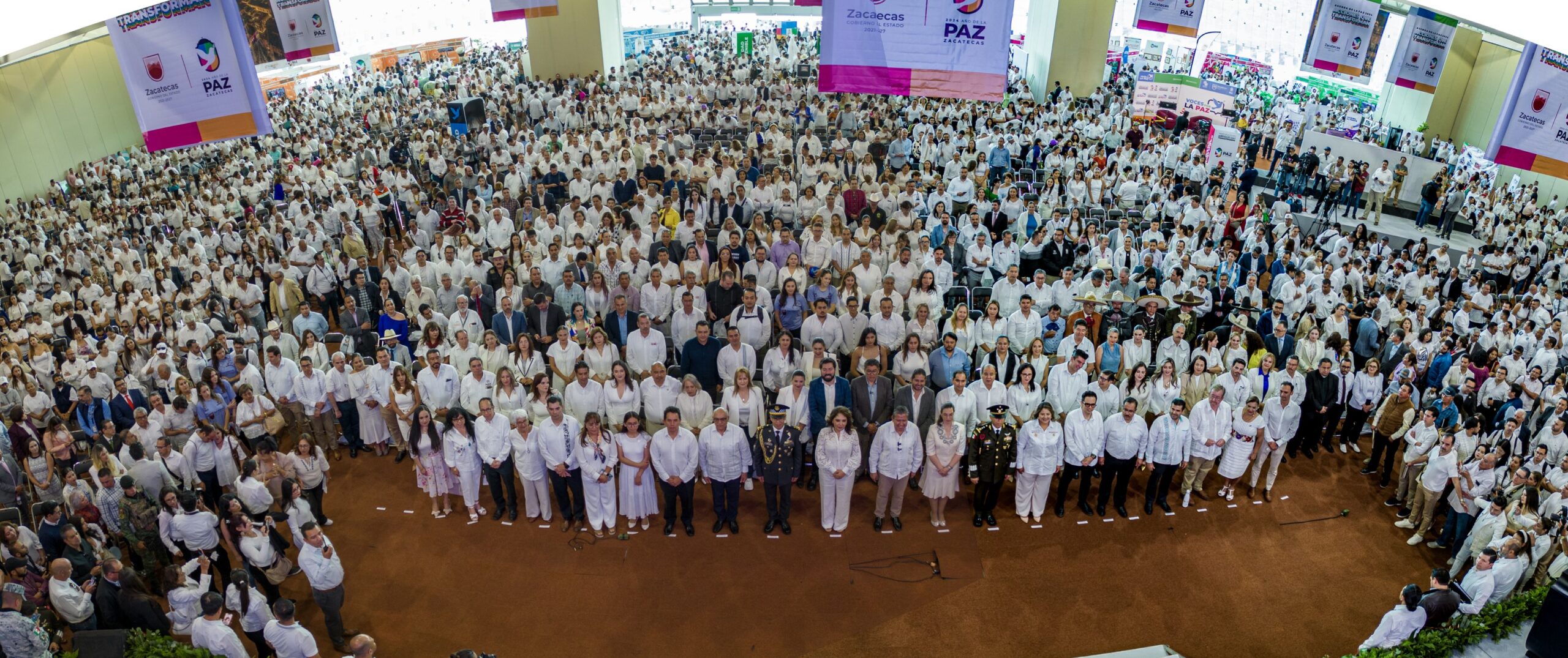 El Gobernador David Monreal agradeció a todos los sectores sociales, como son campesinos, empresarios, adultos mayores, padres de familia, estudiantes, maestros y amas de casa, por atender el llamado a esta convocatoria y ser parte de esta celebración y de las buenas noticias, porque esta estrategia no es un decreto o una campaña mediática, sino una herramienta para orientar todos los esfuerzos hacia la noble misión de recuperar la tranquilidad en Zacatecas.