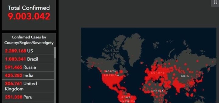 La cifra total de contagios de Covid-19 en el mundo superó este lunes la barrera de los 9 millones. De acuerdo con la última actualización en los conteos de la Universidad Johns Hopkins -cuyas...