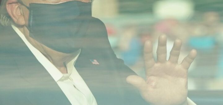 Con cubrebocas y en camioneta, Trump da “sorpresa” a simpatizantes en hospital.